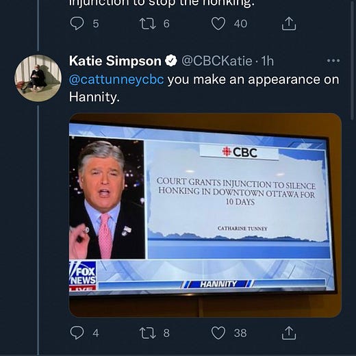 Fox News is treating protests in Canada as a bigger story than one of our two major parties minimizing a coup attempt