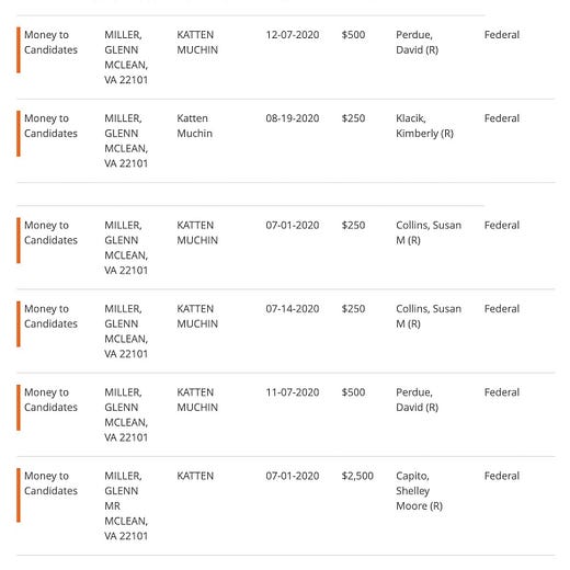 In response to Kraushaar’s tweet, Talking Points Memo editor Josh Marshall pulled campaign finance records indicating that a Glenn Miller from McLean donated largely to Republicans, especially during the 2020 election cycle and in the run up to the Georgia Senate elections early this year.