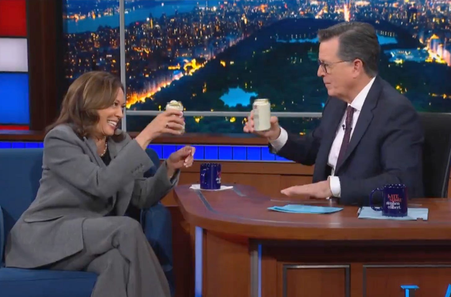 And over the last couple of weeks, Harris has done a media blitz. She appeared on The View, Howard Stern, and Stephen Colbert, where she cracked a beer with the host. (Watch below.)