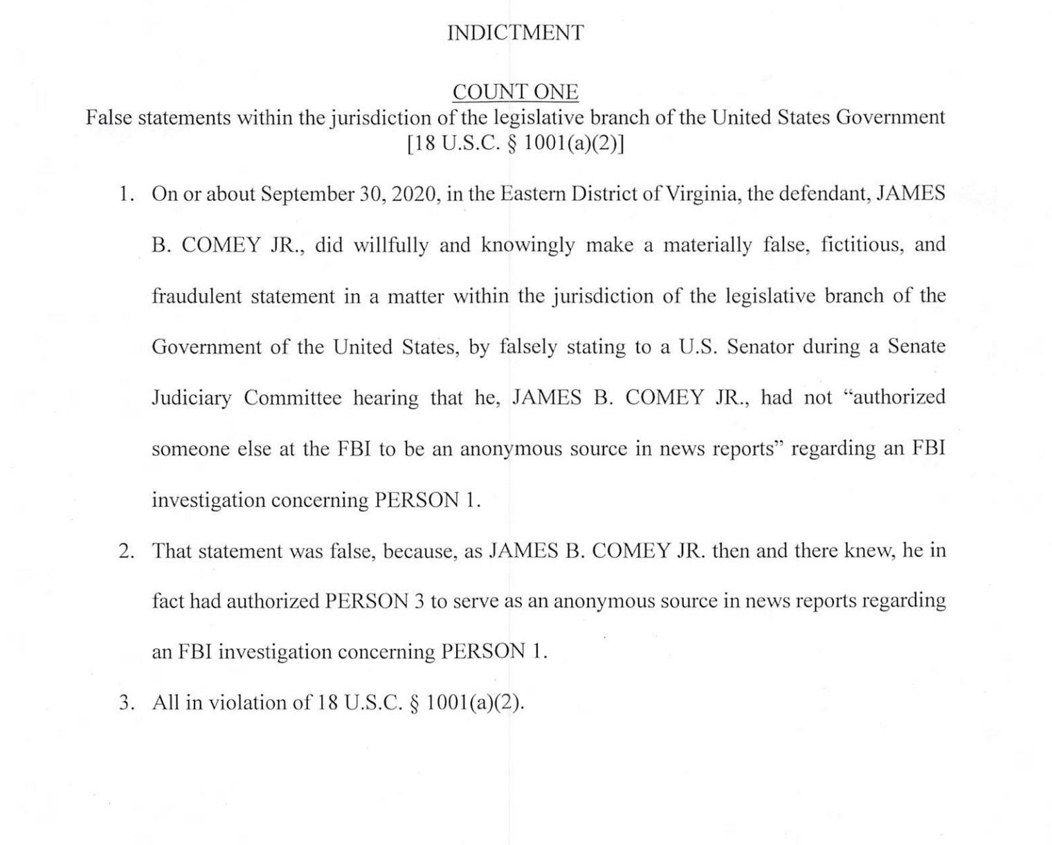 During that hearing, Sen. Ted Cruz asked Comey about prior testimony in 2017 when he denied authorizing “someone else at the FBI to be an anonymous source in news reports about the Trump investigation or the Clinton administration.” (Note that Halligan converted “Clinton administration” into "PERSON 1,” in yet another sleight of hand.)