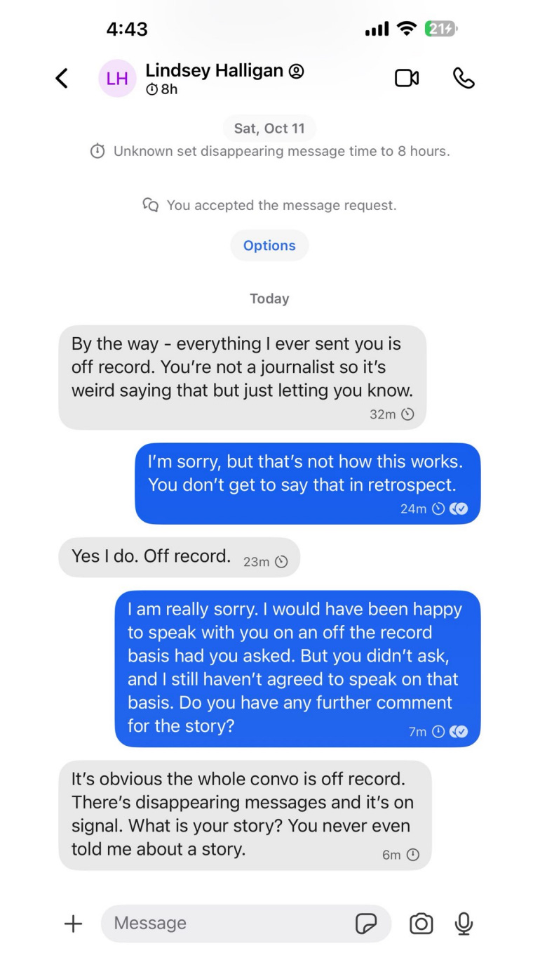 From Halligan’s text exchange with Anna Bower of Lawfare (who, for the record, is a fantastic journalist):