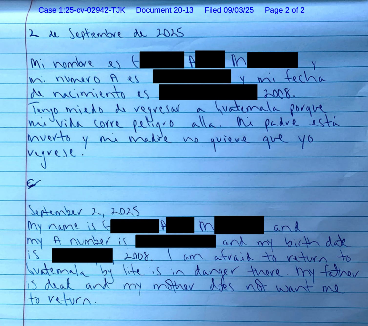 One child says that her parents received “a strange phone call” in August informing them that “the US government is planning to deport me with a larger group of Guatemalan minors.”