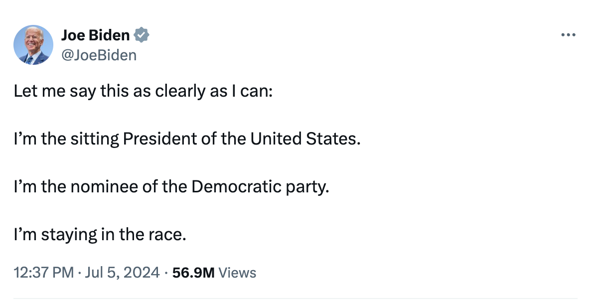 Biden was initially resolute after the June debate, repeatedly stating without equivocation that he intended to stay in the race.