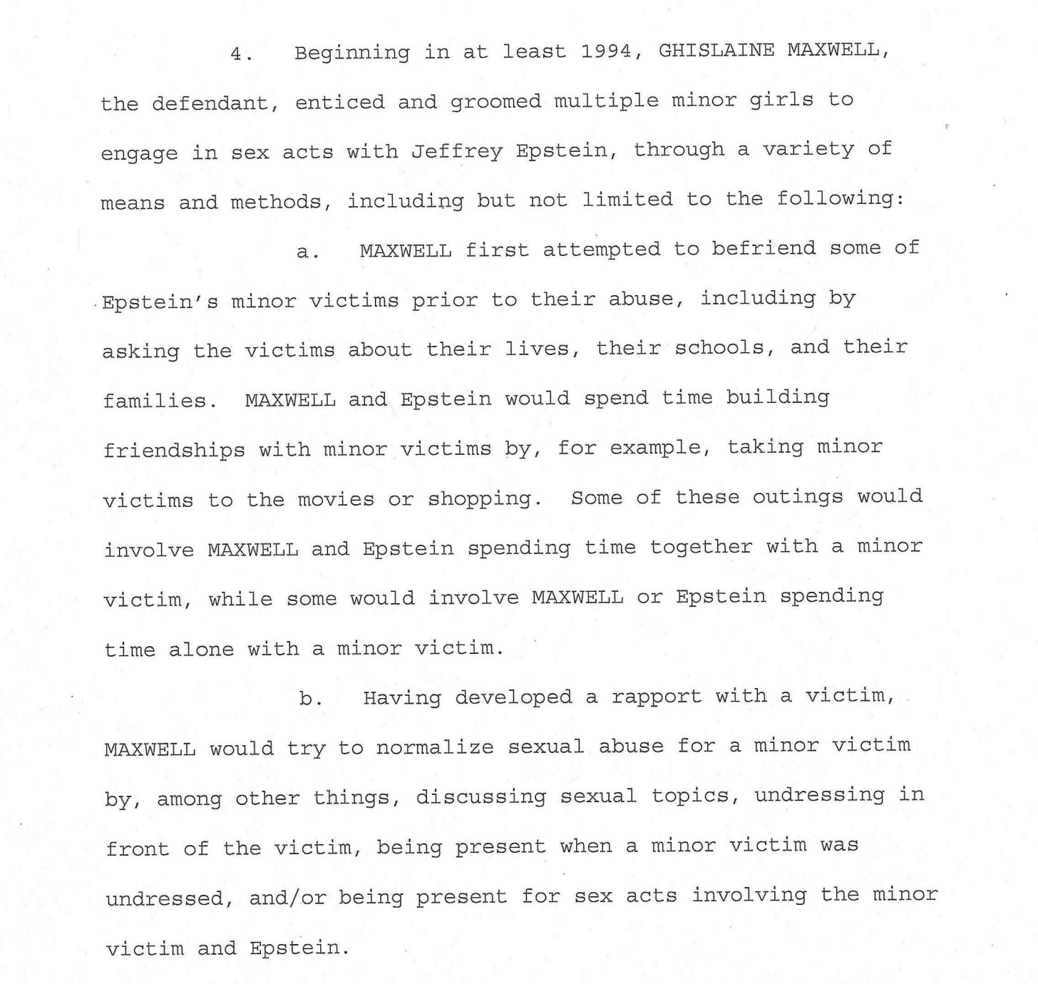 In the early â90s, Maxwell, a broke English socialite, was Epsteinâs girlfriend. But when the relationship ran its course, she stayed in his orbit as a sort of companion and manager, ensuring that his homes ran smoothly and his needs were met. Those needs included sexual gratification by young girls, and Maxwell is alleged to have trawled trailer parks and spas looking for vulnerable children for Epstein to abuse.